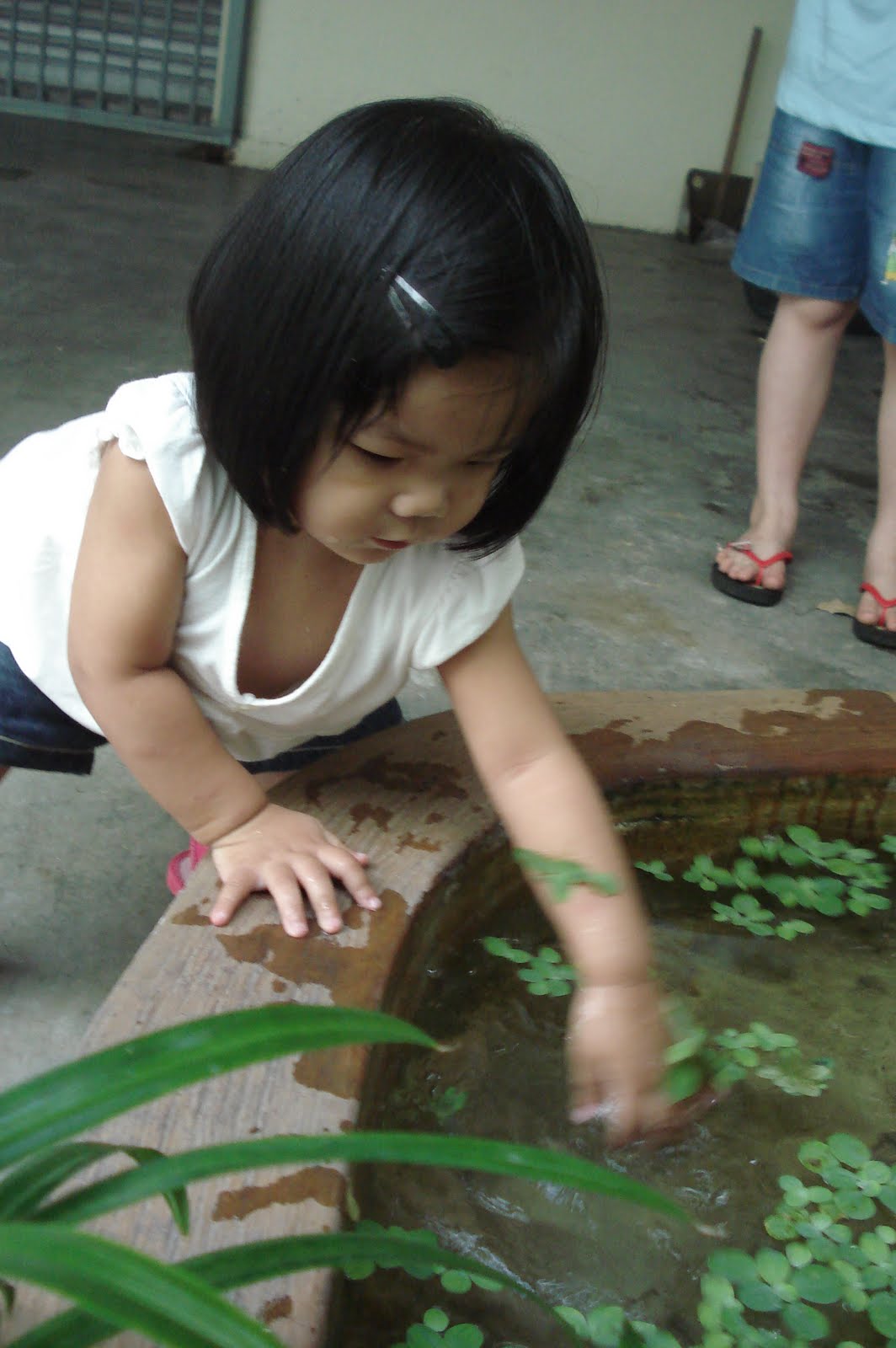 There is a small fish pond nearby Ah Mah's house and I love to go and look at the fish there. Nowadays, I don't want to merely look, but I want to touch them too! Mummy always makes sure I wash my hands properly after touching the water and the fish.